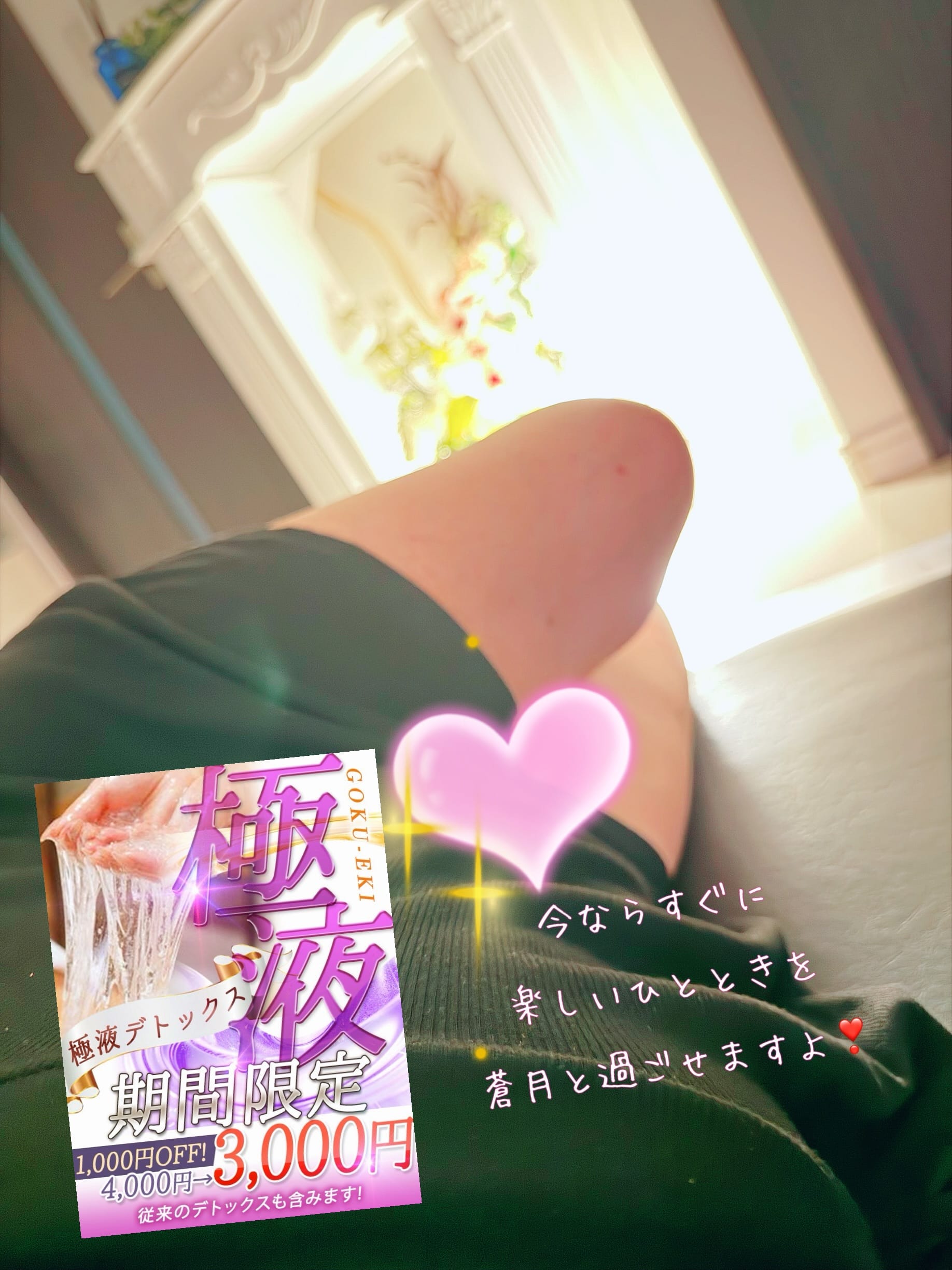 サクッとお試し70分9000円クーポン♡ 今日はサクッとデトックスな気分✅ 費用は安めに抑えたい✅ しっかり鼠蹊部はお願いしたい✅ ルクシーズが全部叶えます!! お電話にて70分9000円コースとお伝えください⭐️