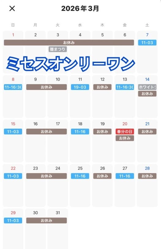 3月の出勤予定です🗓️