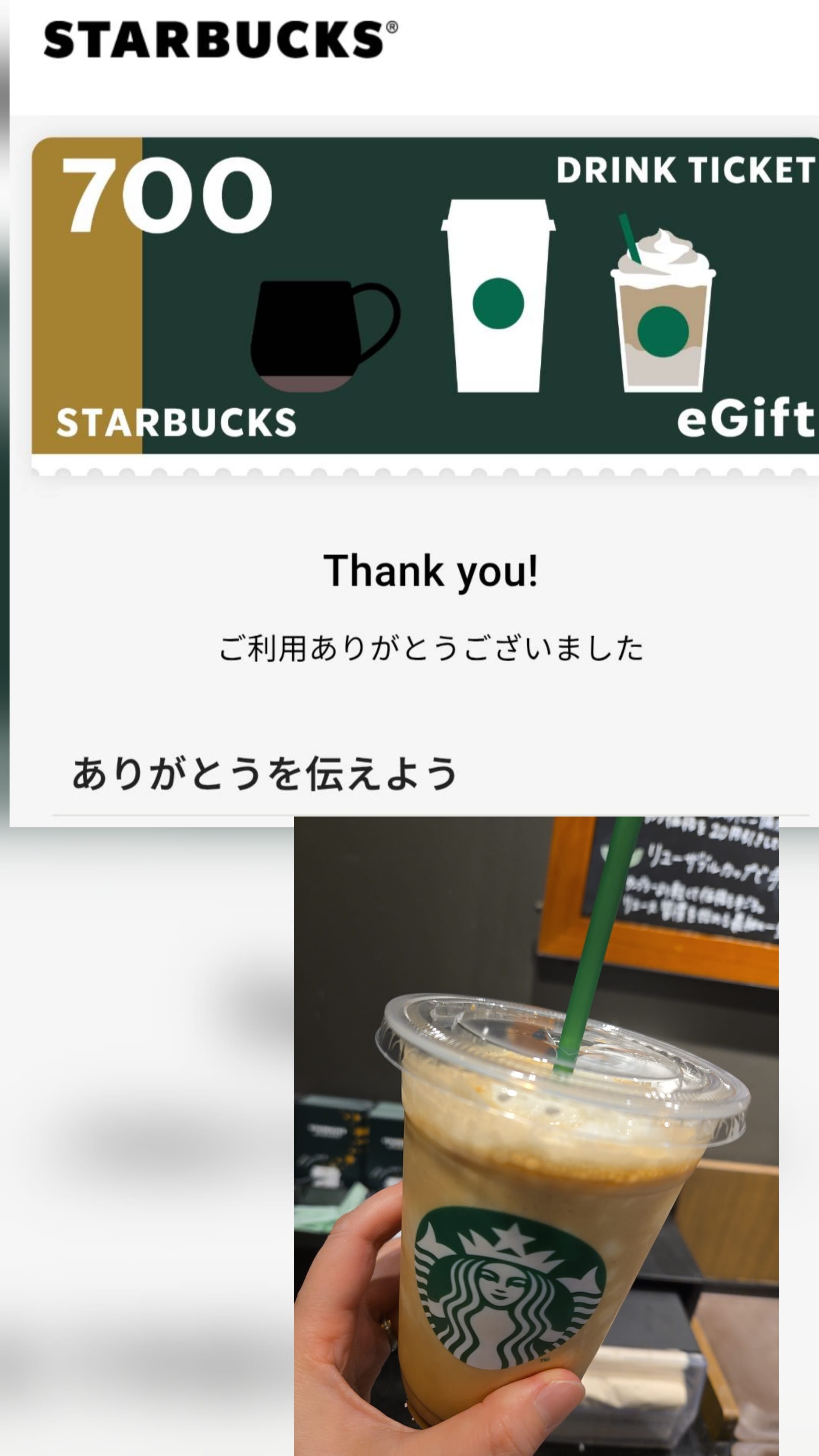 ありがとうございます✨帰りにスタバ寄ってフラペチーノ買いました♥️