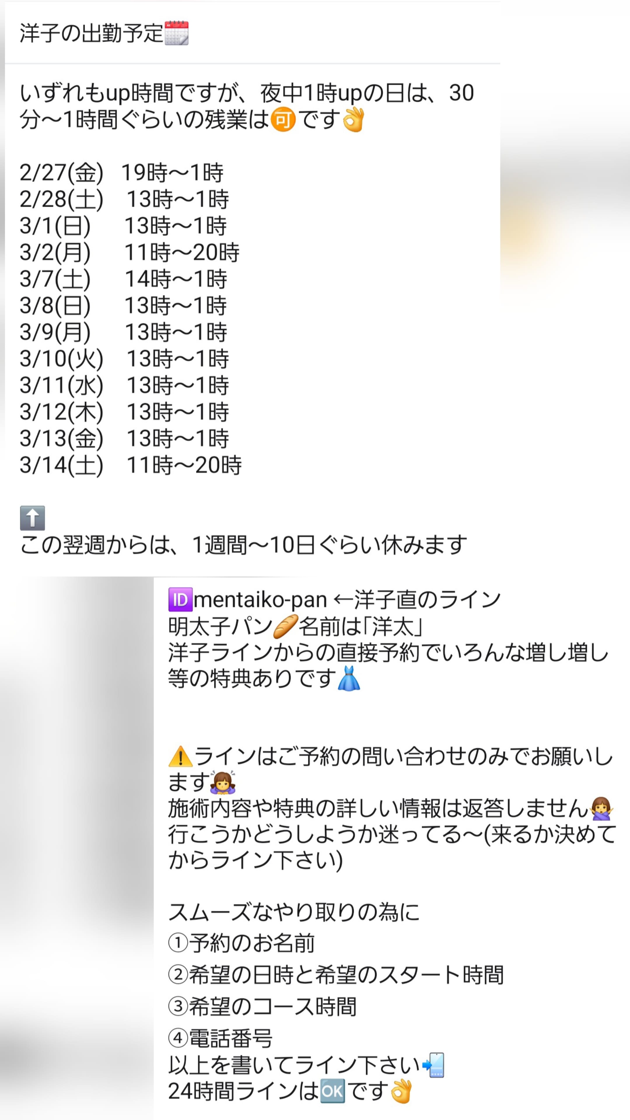 次回出勤は2/27(金)19時~。それと3月半ばまでの出勤予定です