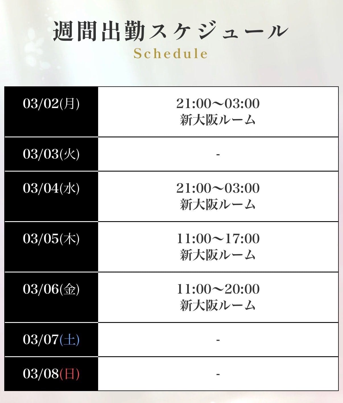 今週のシフトです♡