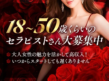 | 応募資格 | * 18歳以上(高校生不可)~50歳くらいまでのセラピスト経験者【資格者、経験者優遇】 * 未経験者・経験者ともに大歓迎。 * 「落ち着いたお店で働きたい」「年齢を気にせず長く活躍したい」という方。 |