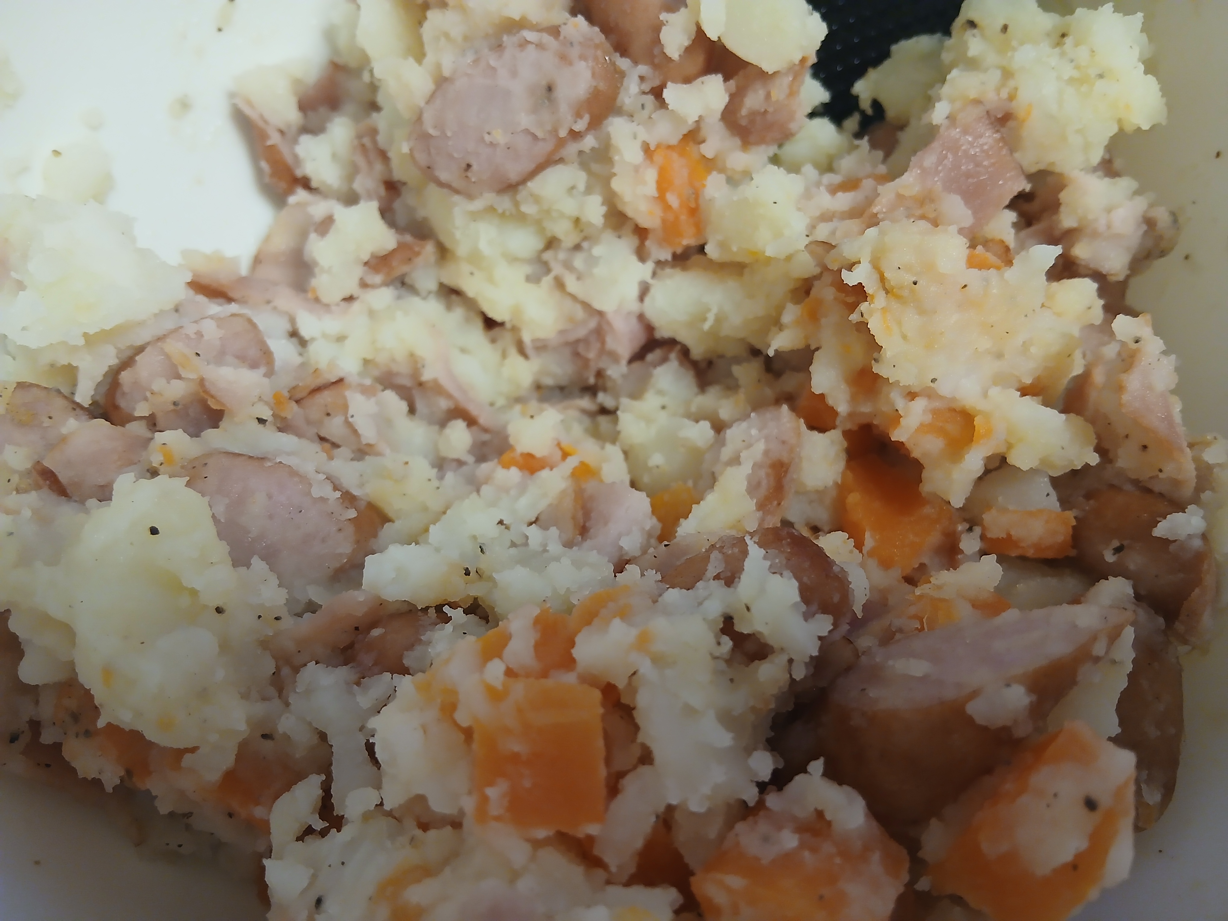私の作るポテサラは...香薫ウインナーとベーコンをカルピバターで炒めて...