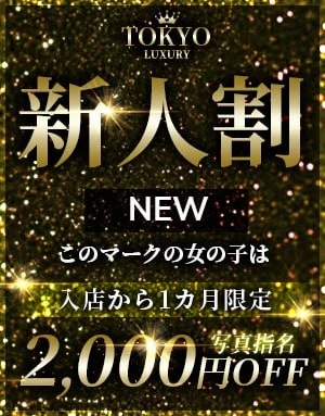 新人限定割引 HPのプロフィールに【NEW】のマークが付いている セラピストはコース料金から【2000円割引】 HP出勤スケジュールはコチラ♪ https://tokyo-luxury.xyz/schedule/ ※他の割引との併用はできません